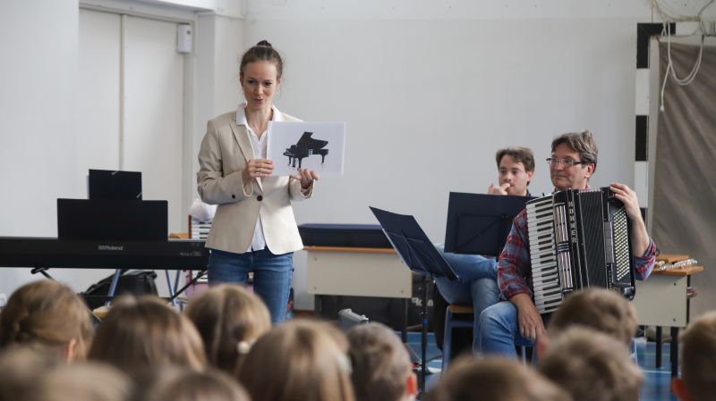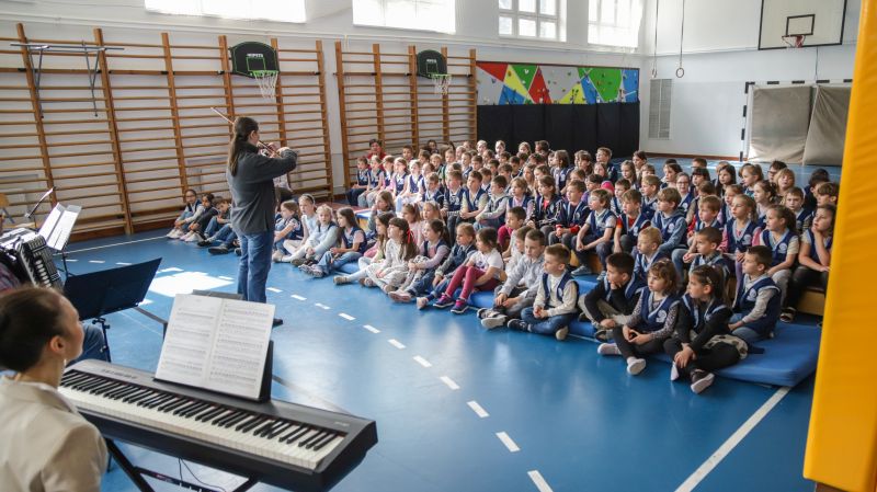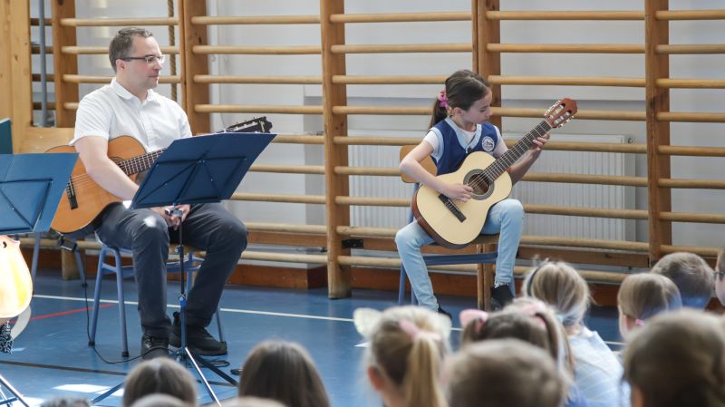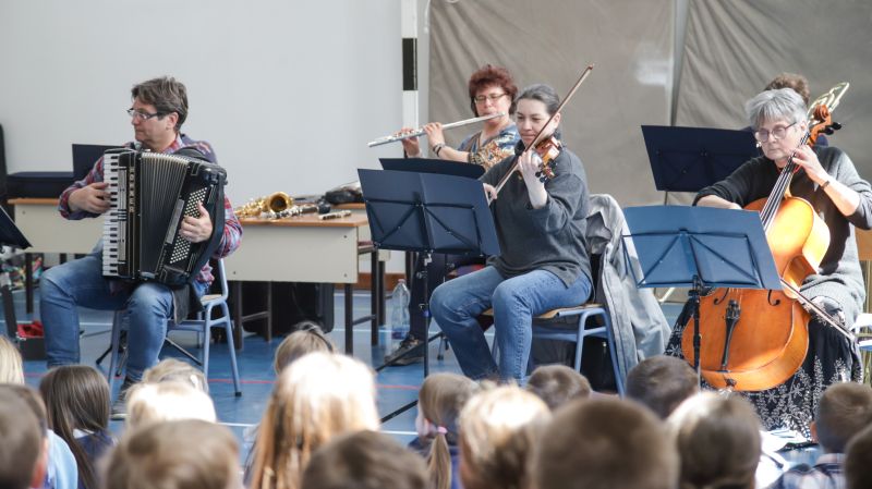 Április 21-én délelőtt az érdi Lukin László Alapfokú Művészeti Iskola zene pedagógusai voltak iskolánk vendégei. Ez a vendégség azonban rendhagyó volt, mert mi, az alsó tagozatosok lettünk meghívva egy fantasztikus hangszerbemutatóra.